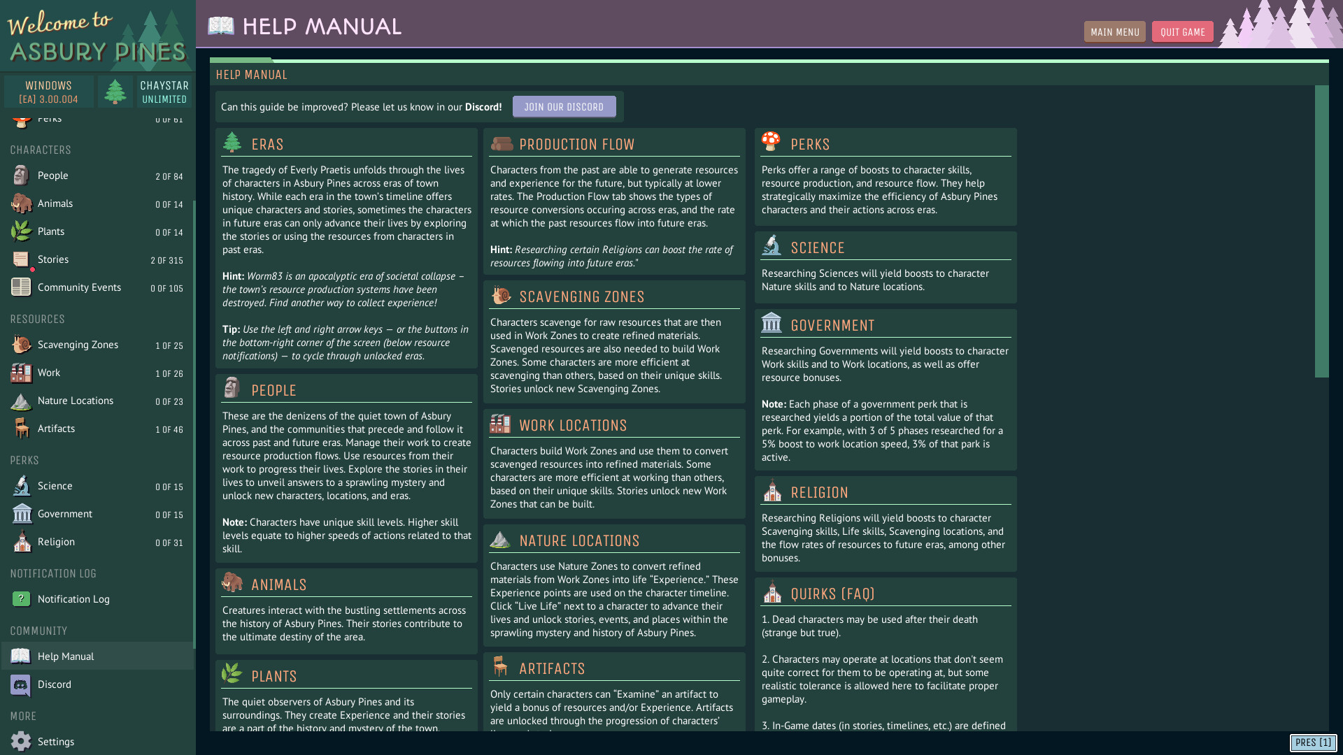 If you enjoy gameplay that balances resource management, rich narrative development, automation/factory strategy, and idle progression, Asbury Pines was made for you!