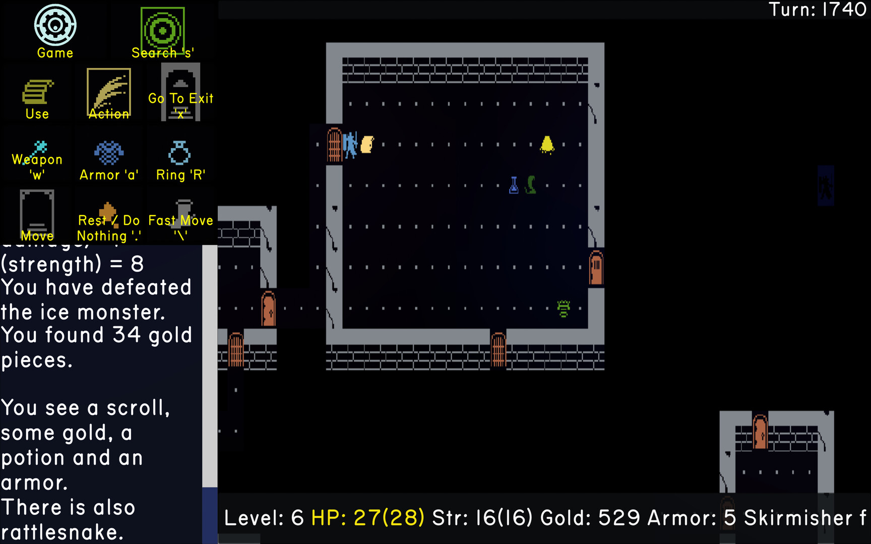 This game was inspired and influenced by the original Rogue - a 'roguelike' genre defining game from the '80s originally played in Unix text terminals - but adds many enhancements and refinements in order to allow for more modern user friendly experience - all while preserving the original feel and gameplay -
