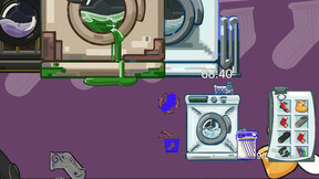 Freshly washed socks turn into gold coins, which you can use to upgrade your washing machine —