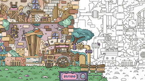 Исследуйте этот удивительного мир фэнтезийного стимпанка, находя милых кошек и раскрашивайте черное - белые локации цветными красками.