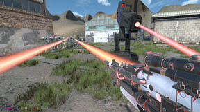 FPS with random gun drops, large map loot and robots meat pigeon mode. The mechanics are simple to build, simple strategize play mode.