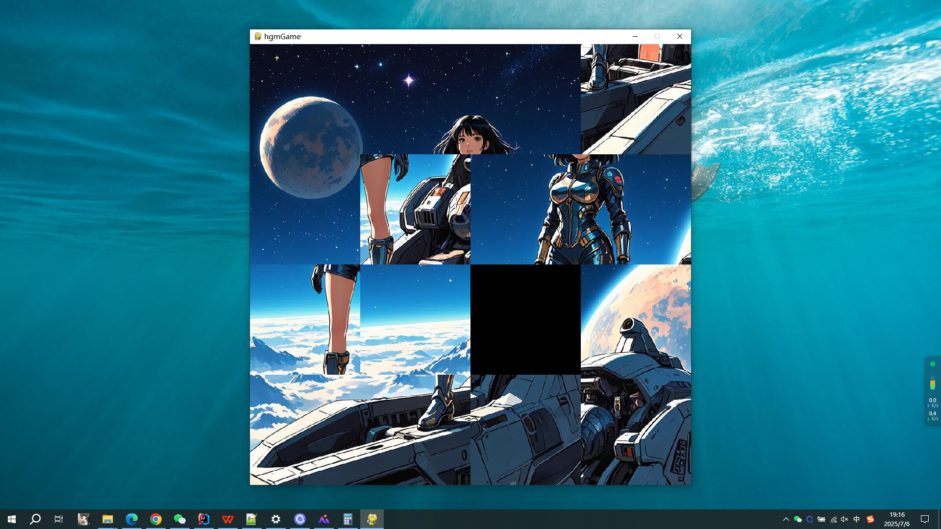 Game steps: Click the left mouse button on the image around the black square, and the image and black square will switch positions. The goal is to assemble all the small images into a complete image. The complete image is as follows: