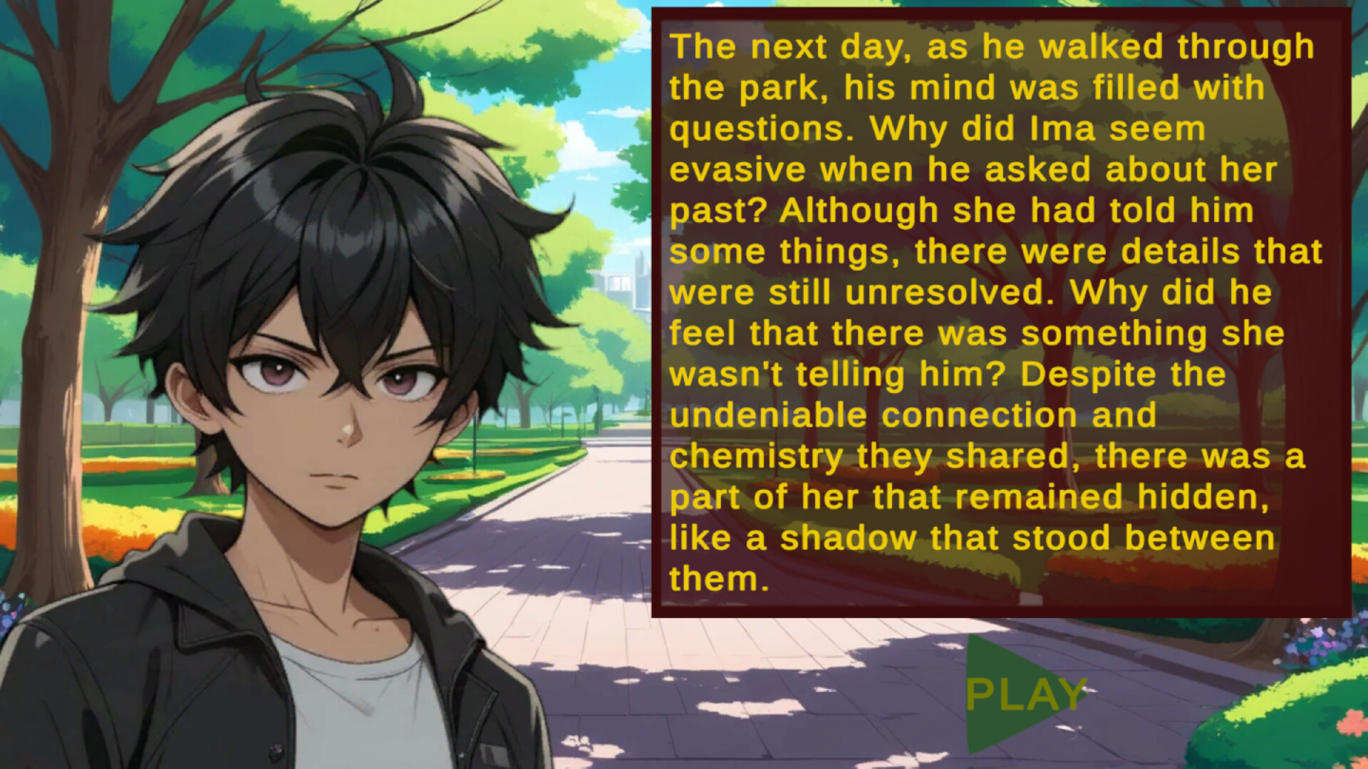 A romantic and adventure visual novel where your decisions are very important.