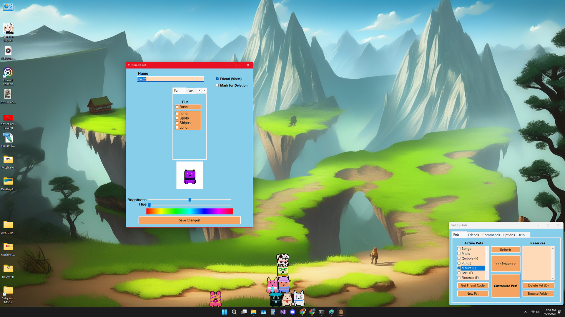 Pets marked as friends will occasionally visit your desktop, joining your main pet for a surprise appearance.
