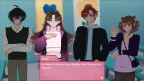 You play as Aidan, a new student at your high school. Aidan is uncertain and shy, but he will soon meet the four romance candidates, Kai, Ruby, Julian, and Lucy. They may seem warm and welcoming at first, but each of them may be hiding their own secrets...