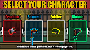 2KXX is a local multiplayer game. Fight your friends on a selection of various characters, maps, and game modes. Spice your Match with a list of modifiers that can make your life easier or worse.