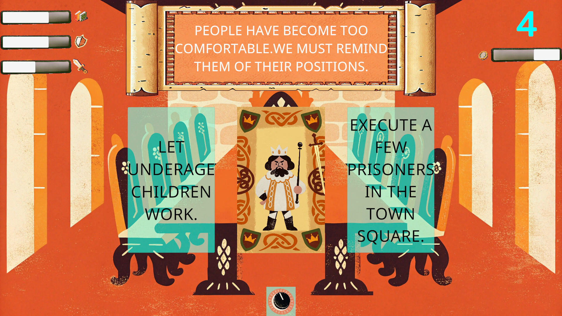 Текстовое, выборочное приключение. Интриги, доверие, верность, удача, рефлекс... Насколько высокое положение ты сможешь занять в этом средневековом мире?