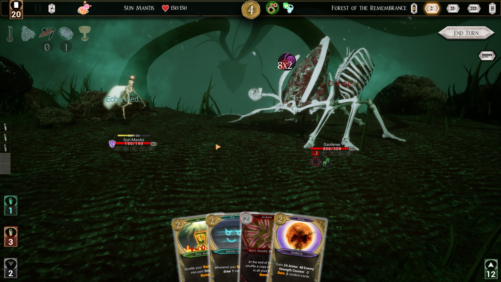 As a Sun Mantis, you conjure illusions of yourself and sacrifice a large portion of your cards for powerful effects. But the wisest Sun Mantis raises what is lost from the ashes and even strengthen it, thus forming an endless cycle of burning and rebirth. Enlighten yourself to unlock the powers of the suns and the true nature of your abilities. Master all techniques, and your enemies will go up in flames.