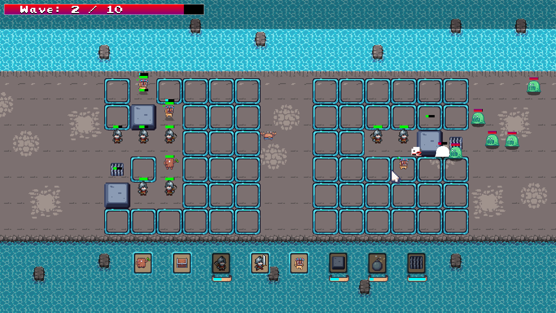 [b][i]Tower Defense, в которой надо защитить крабов от нападающих с двух сторон волн врагов.[/i][/b] В этой игре вам придется действовать очень быстро, поскольку тут основной и единственный ресурс - время, за которое восстанавливается таймер покупки юнитов, стен и ловушек. Вам надо не пускать врагов к крабам в центре. После уничтожения указанного количества волн вы переходите на следующий уровень. Меняется карта, добавляются новые юниты и постройки. Улучшать их нельзя, но можно снести и поставить другие.