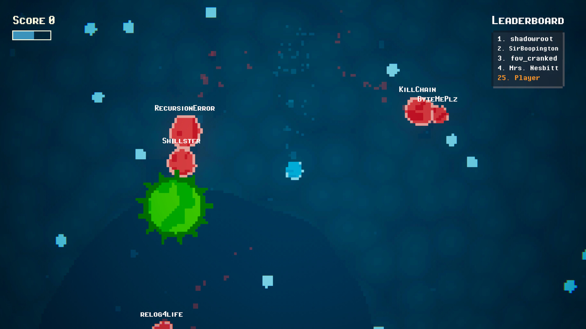 Rogue Cell is an arcade-styled game about absorbing cells, avoiding hazards, collecting DNA, and upgrading on a path to become the biggest and toughest microscopic organism in the primordial soup.