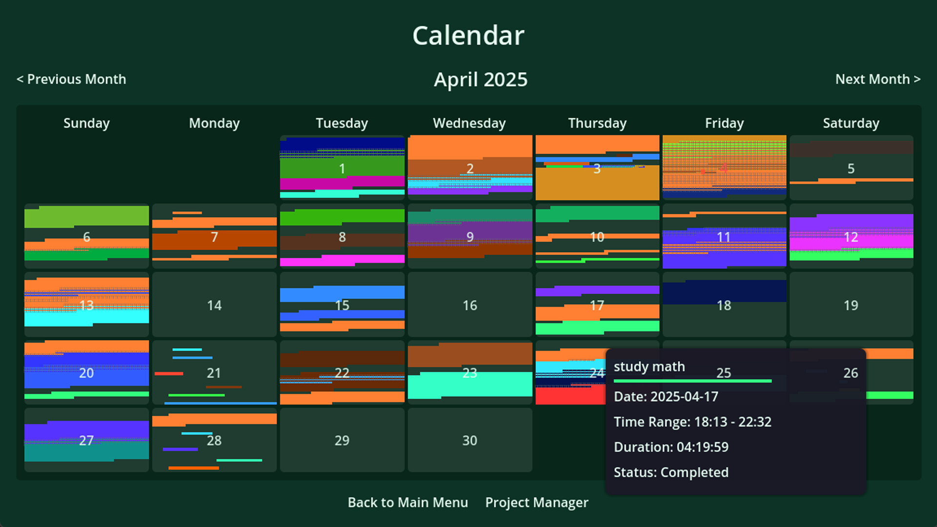 Detailed Statistics: Analyze your productivity patterns with comprehensive time tracking and visualization tools.