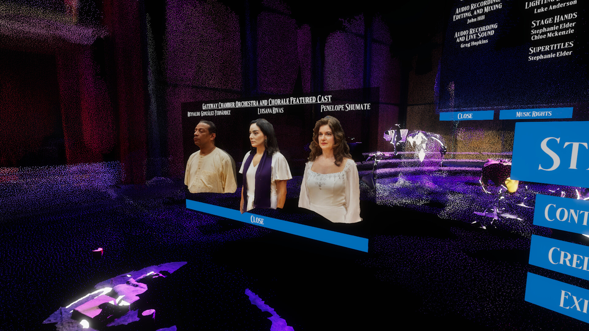 Set in a 3D point cloud theater environment, “La Pasión XR ” brings visitors to an ephemeral, audio-reactive concert experience where they are free to explore a showcase of powerful volumetric and 360 stereo recordings of the Gateway Chamber Orchestra in Clarksville, TN.