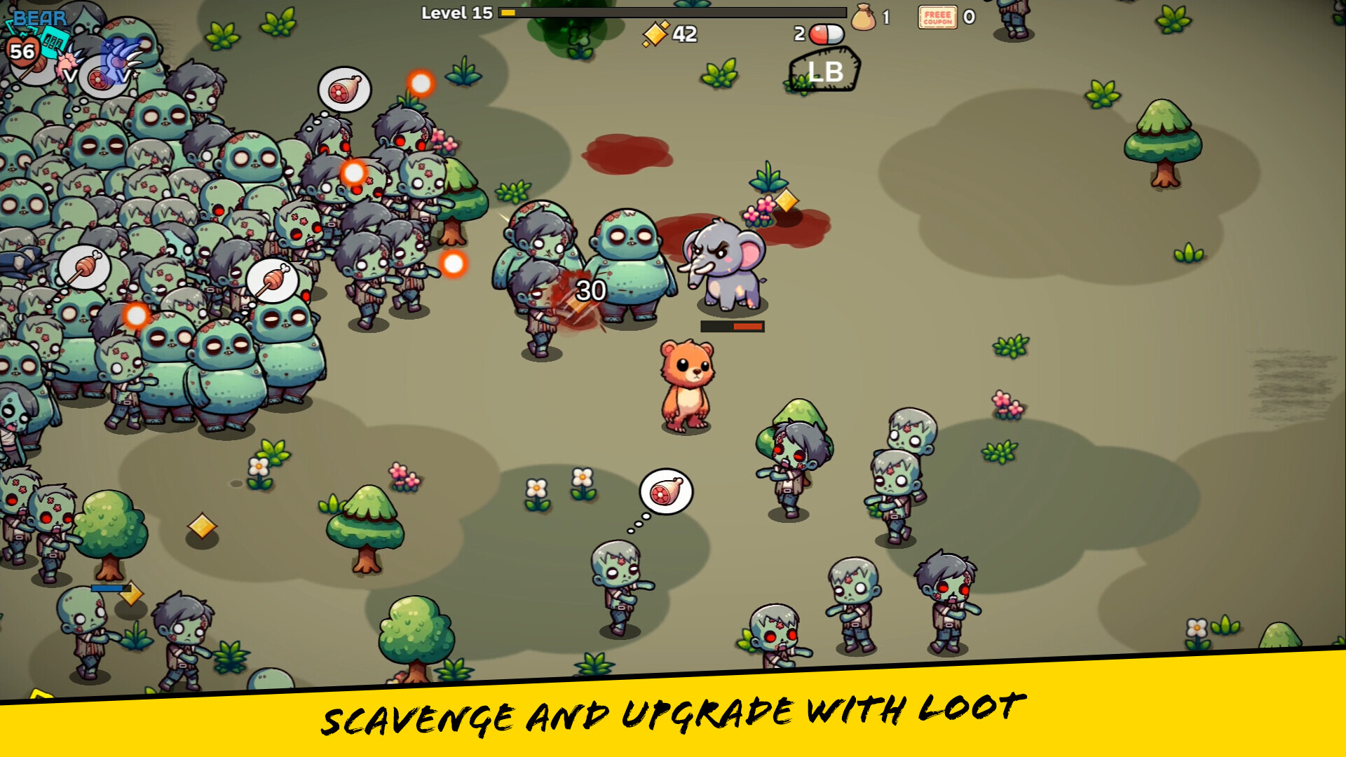 Welcome to Paws Against the World (PAW), where the last humans are gone, and it’s up to the animals to claw their way through hordes of relentless zombies. Think fast-paced, loot-grabbing action, but with a wild twist—play as cute critters fighting for survival.