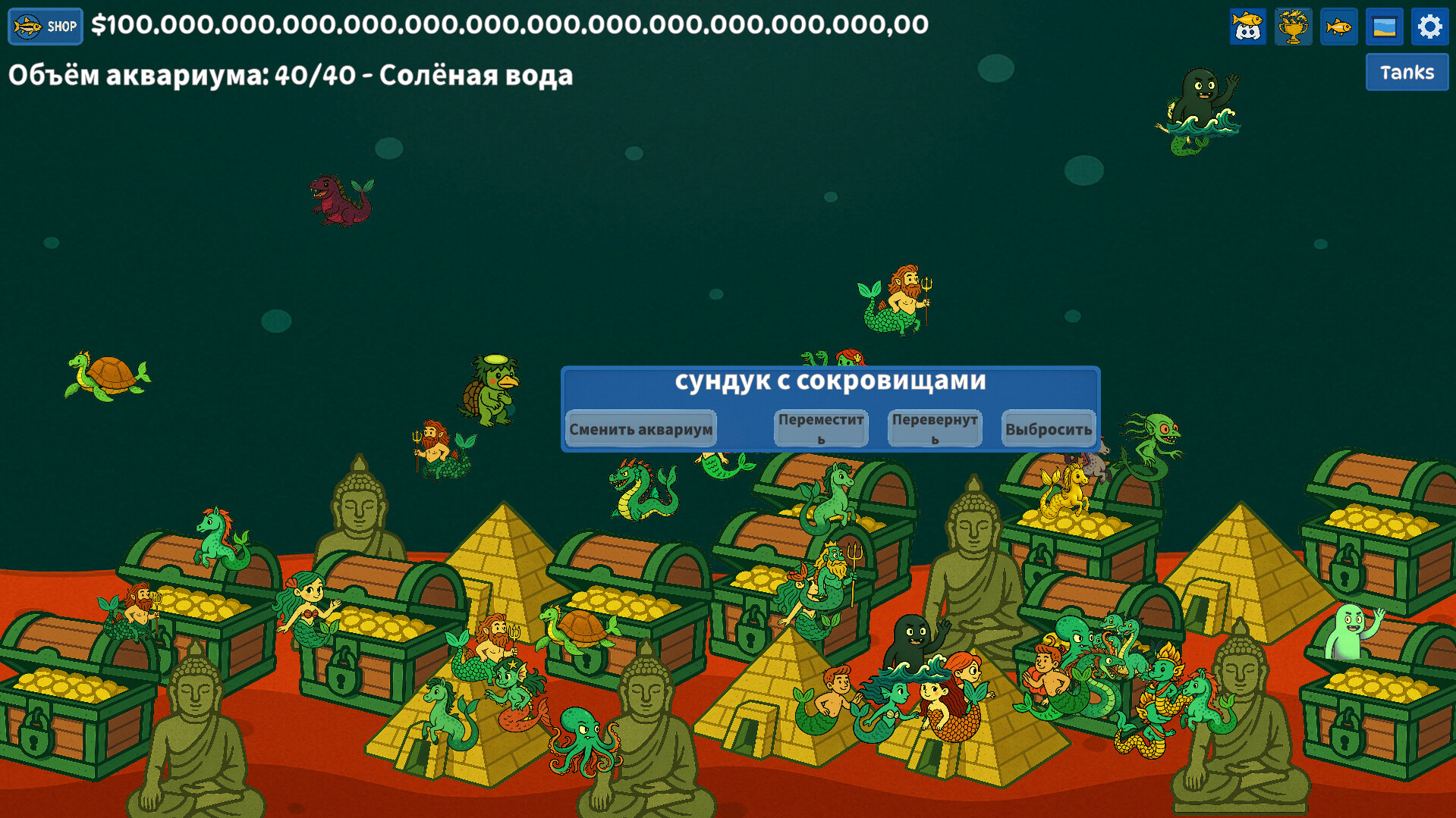 Выбирайте стили аквариумов, циклы «день–ночь» и декор. Создавайте своё идеальное подводное убежище.