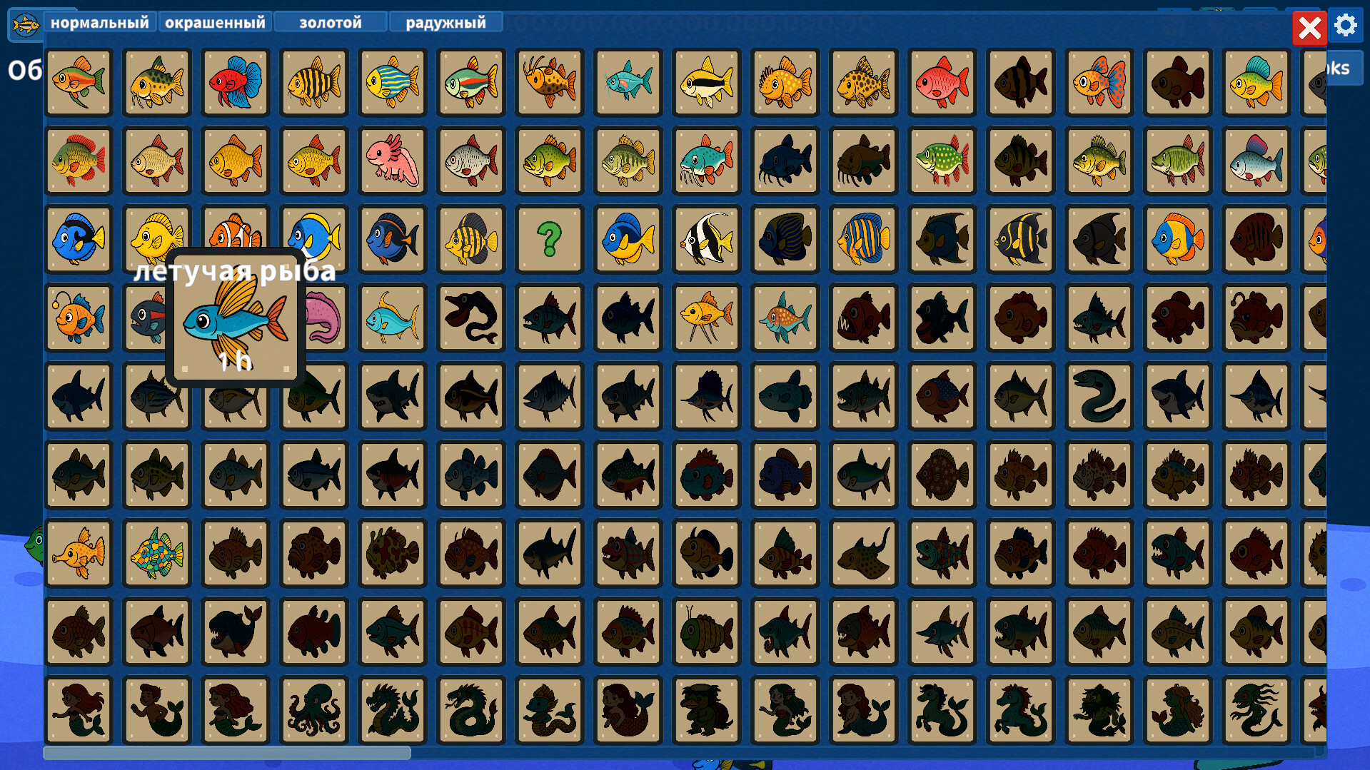 Более 522 базовых дизайнов и свыше 4 176 иллюстраций для коллекционирования и созерцания. Каждая рыба относится к одному из семи уровней редкости: Обычная, Необычная, Редкая, Эпическая, Легендарная, Мифическая, Древняя.