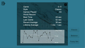 5 game board sizes: 5x5, 7x7, 9x9, 11x11 and 13x13. From speedy run to mind boggling difficulty to suit all tastes.