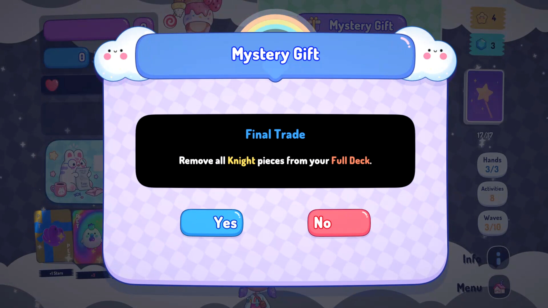 Посещайте уютное кафе между волнами, чтобы усыновить питомцев (пассивные бонусы), выбрать еду (временные усиления) и использовать особые инструменты для улучшения колоды.