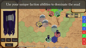 Players begin the game as one of six factions with control of three islands, a fleet of ships and a handful of gold. A player obtains victory over the other players by controlling 6 islands or being the last ship sailing. There are many routes to that victory but the journey will without a doubt involve sailing your ships, firing cannons, seizing islands, and using faction abilities.