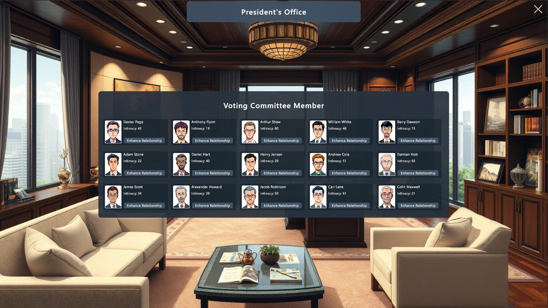 Every story has another side. As the manager of such an important institution, you will often receive invitations for private meetings. Representatives from different organizations and countries will request decisions that benefit them. Besides the salary from the institution, this is your main way to grow personal wealth. As for the consequences of these decisions, sometimes you may not care...
