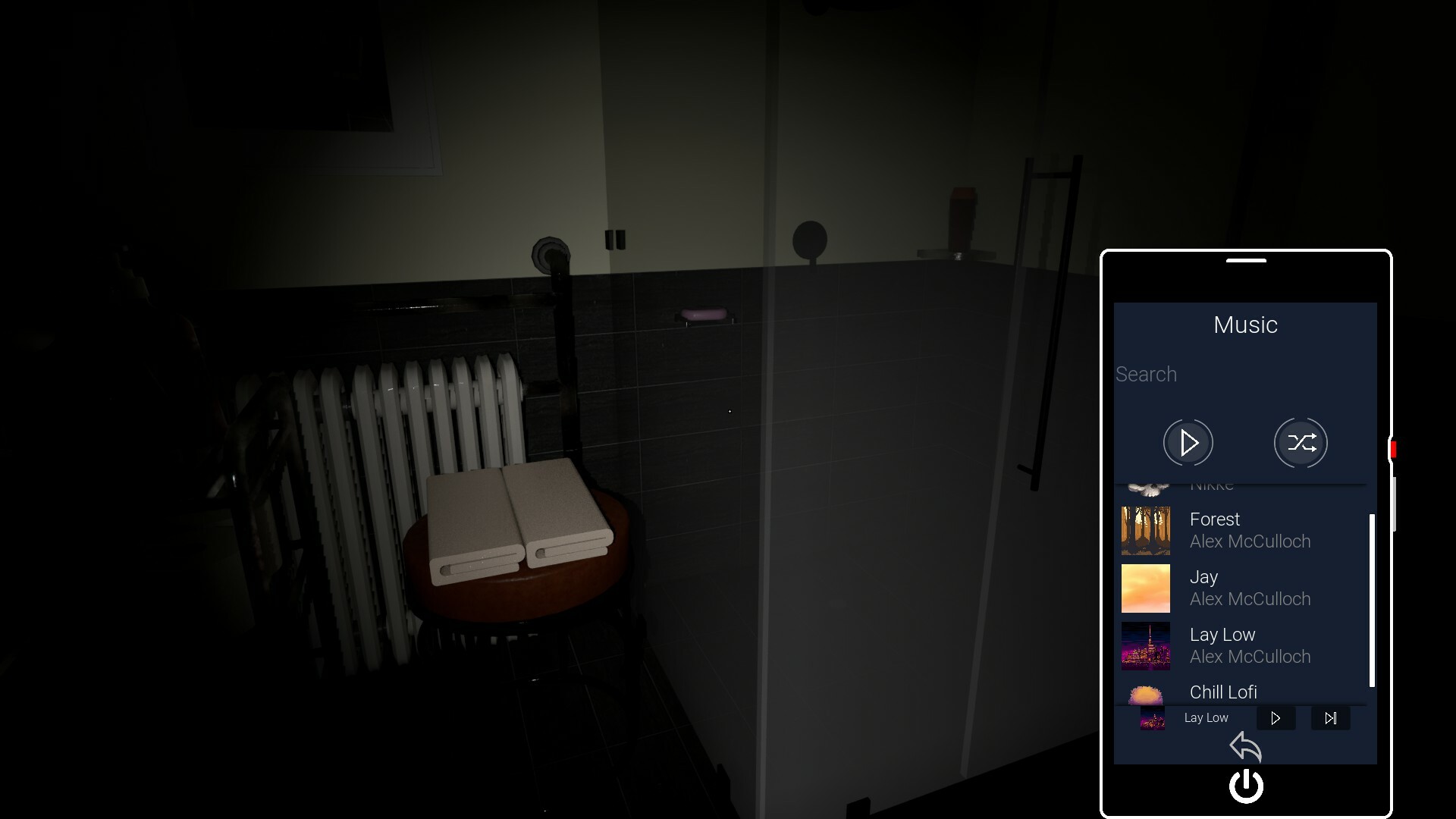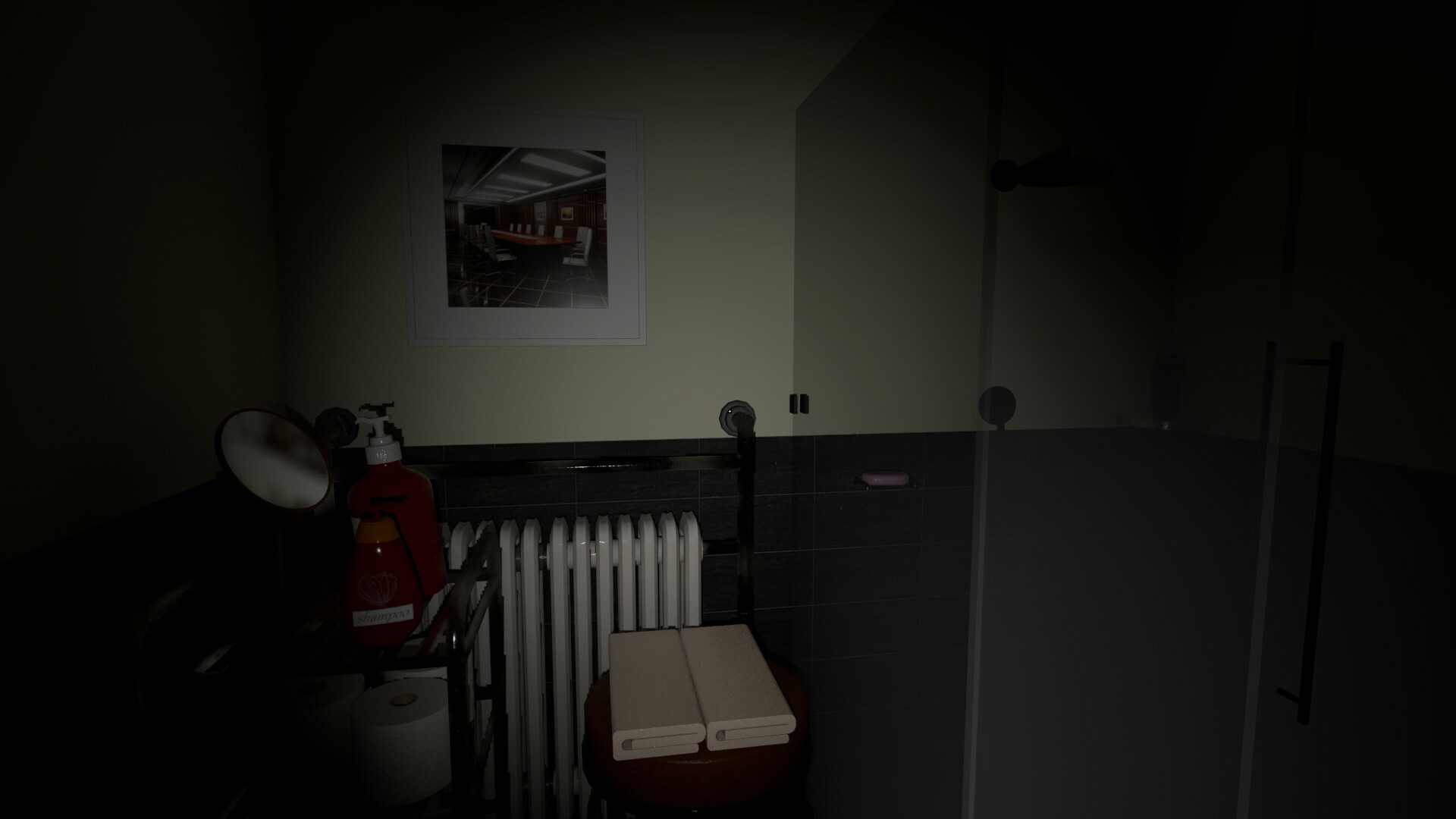 You're being trapped in your bathroom, be quiet and save yourself.