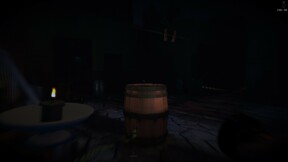 The village is haunted, so the player can hide in cabinets, barrels and under beds to avoid confrontation.