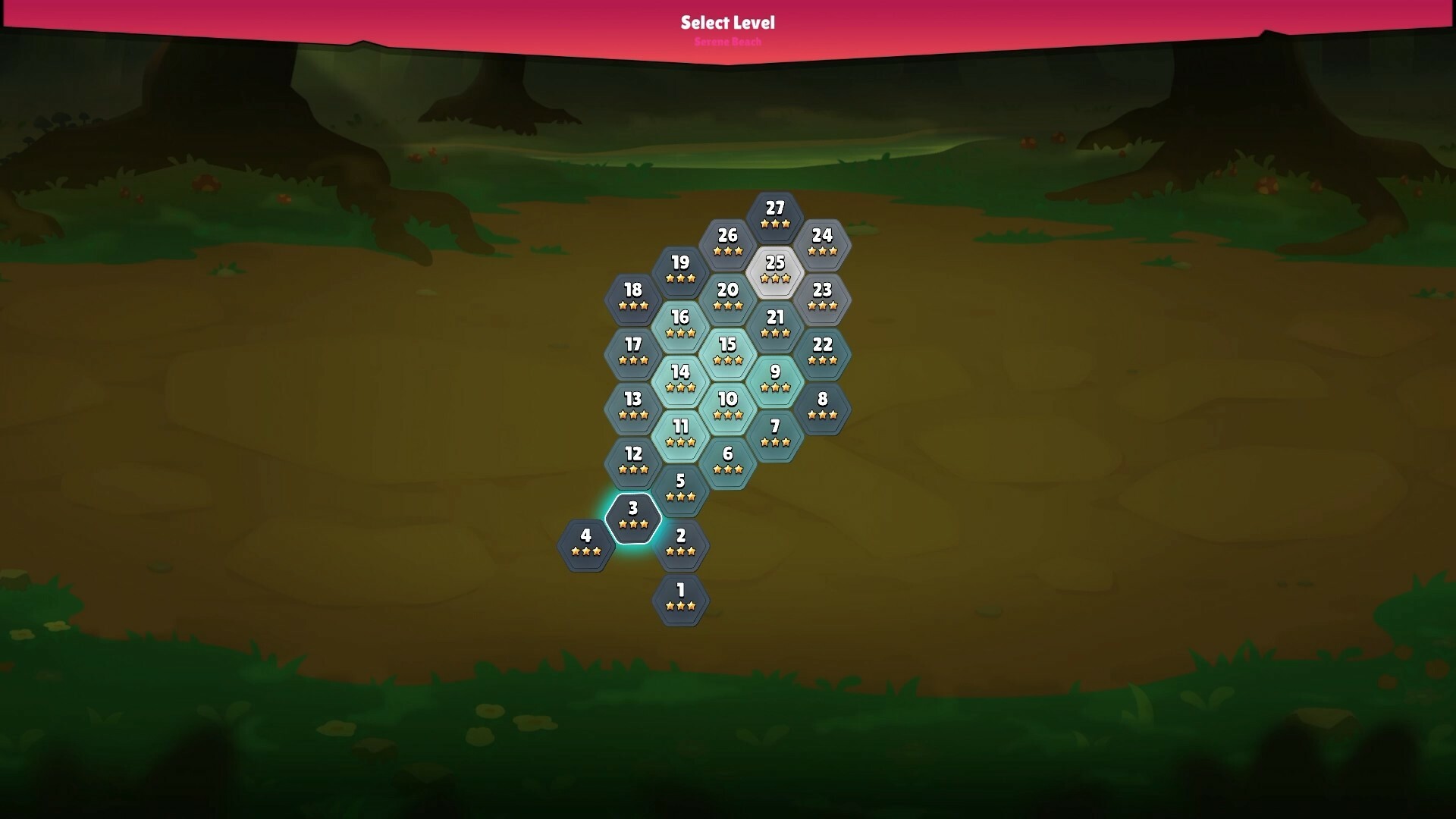 Испытайте свой мозг, решая десятки уникальных задач в Hegzis — захватывающей игре-головоломке с шестигранной картой в красочном 2D-стиле. Выберите сцену («Безмятежный пляж», «Шепчущий лес» или другую) и проходите уровни каждого из миров, располагая фигуры из соединенных шестиугольников так, чтобы они образовывали линии в любом направлении.