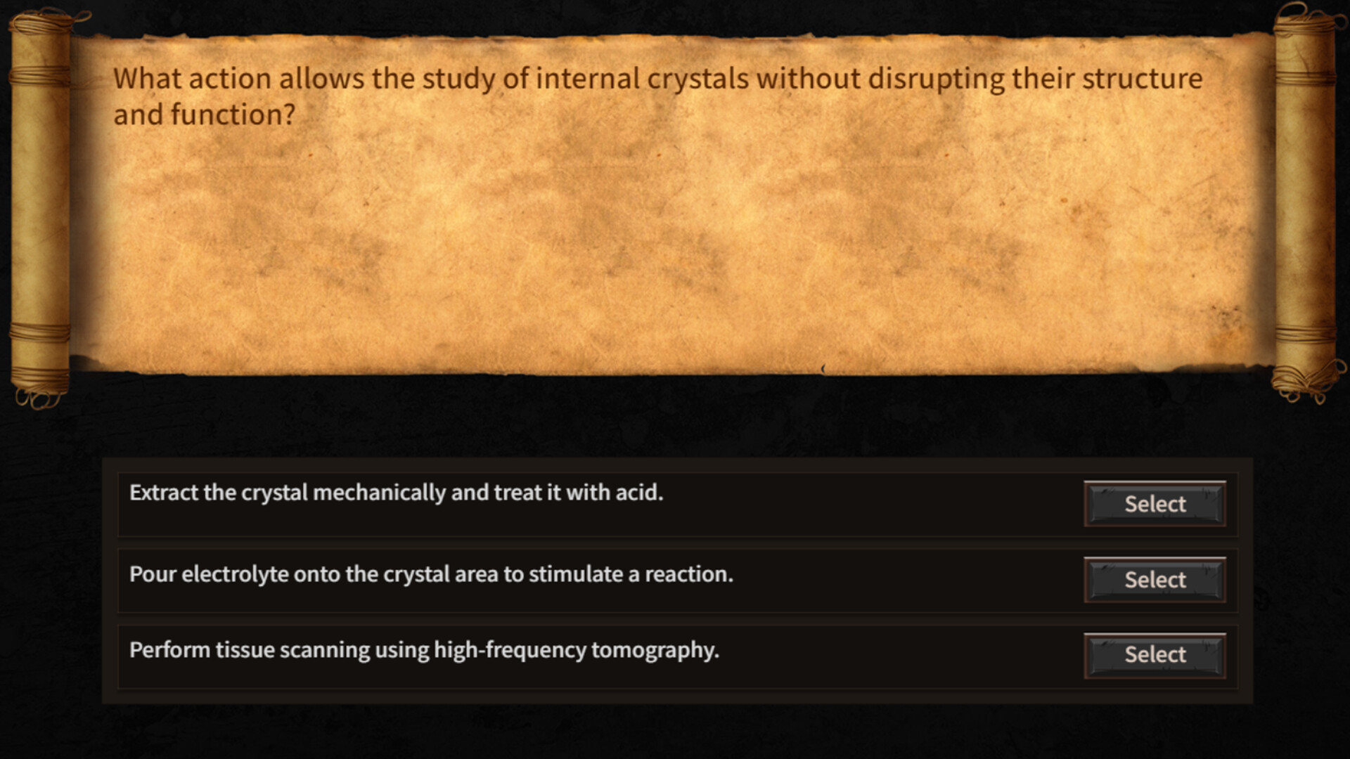 • Gameplay: This section unfolds like a scientific journal, demanding your intellect to navigate medical/anatomical procedures.