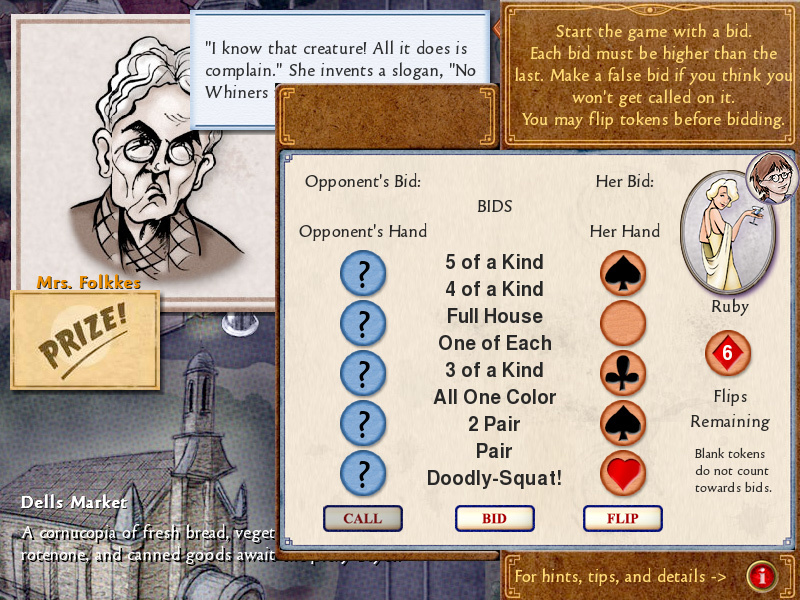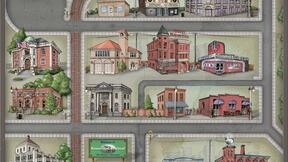 Explore four beautiful game boards, dozens of character cards, and thousands of dialog cards (worn and aged from decades of neglect) which comprise the zany world of an American small town in the 1920s.