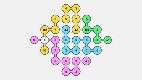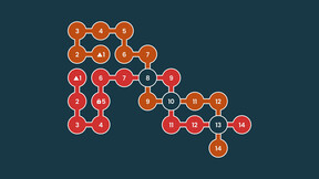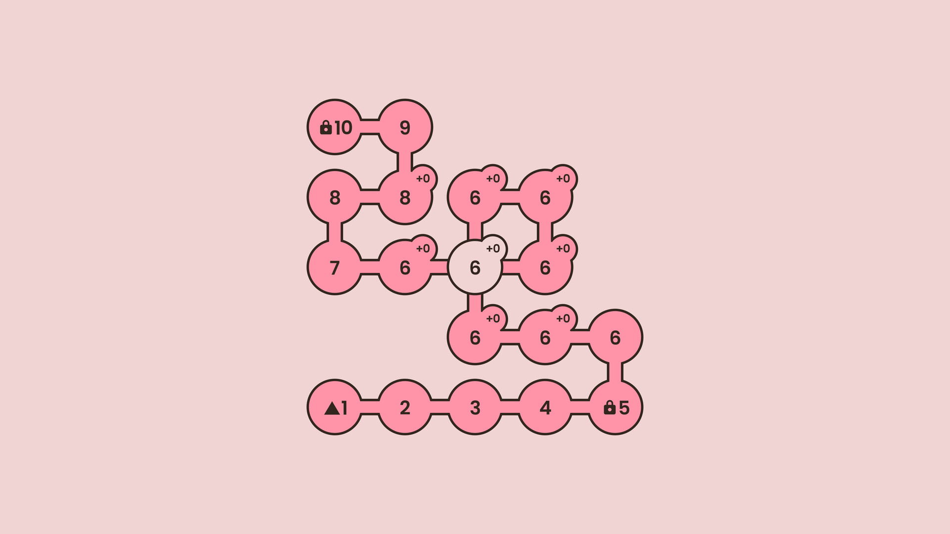 Each level presents a constellation of circles that must be chained together, starting from one or more roots.