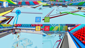 Use boost pads, grind rails, and wall running to traverse arenas and incapacitate your opponents with a variety of items! Collect the puck, and fire it past the robo-goalie to run up the score, battering into your opponents along the way to gain an advantage.