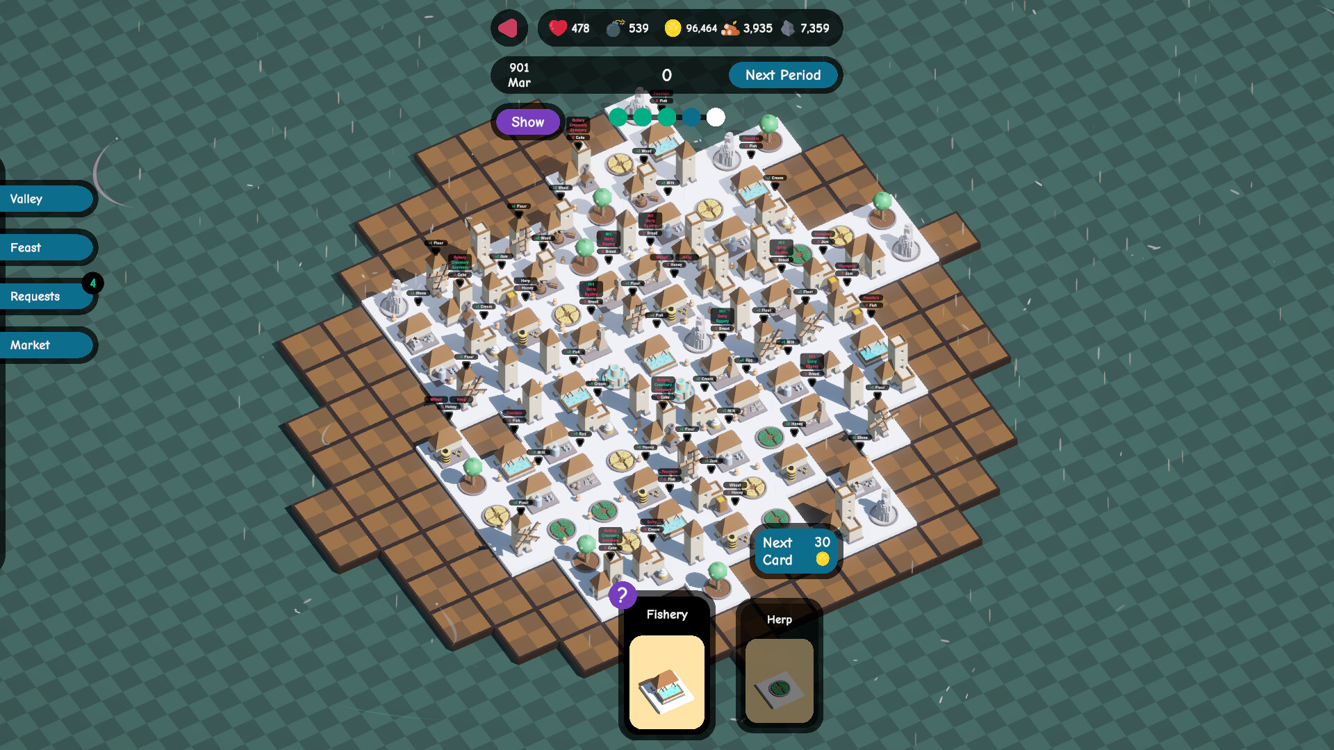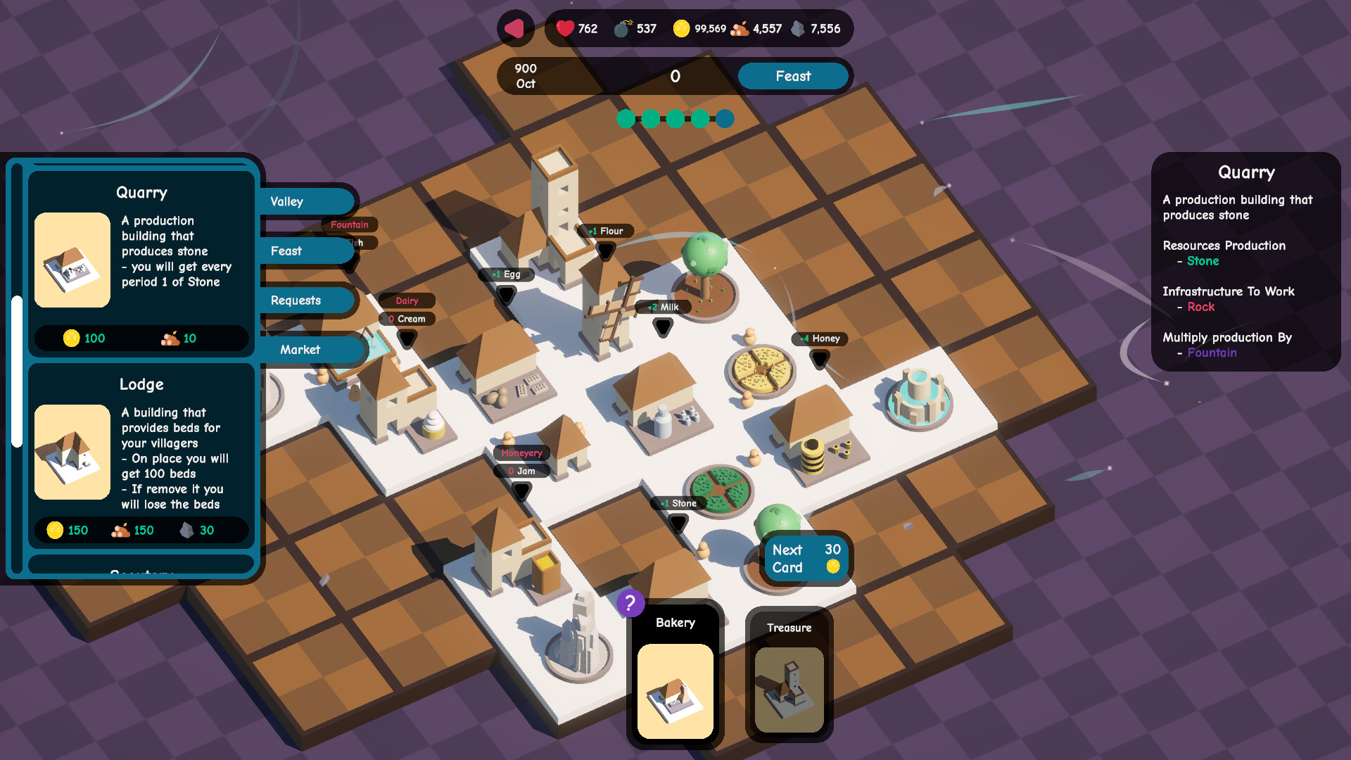 Feast Valley is a strategy game where you build farms, factories, resource buildings, and houses. Produce and sell food while feeding your villagers. Manage your resources to grow your valley and create a successful food-producing valley.