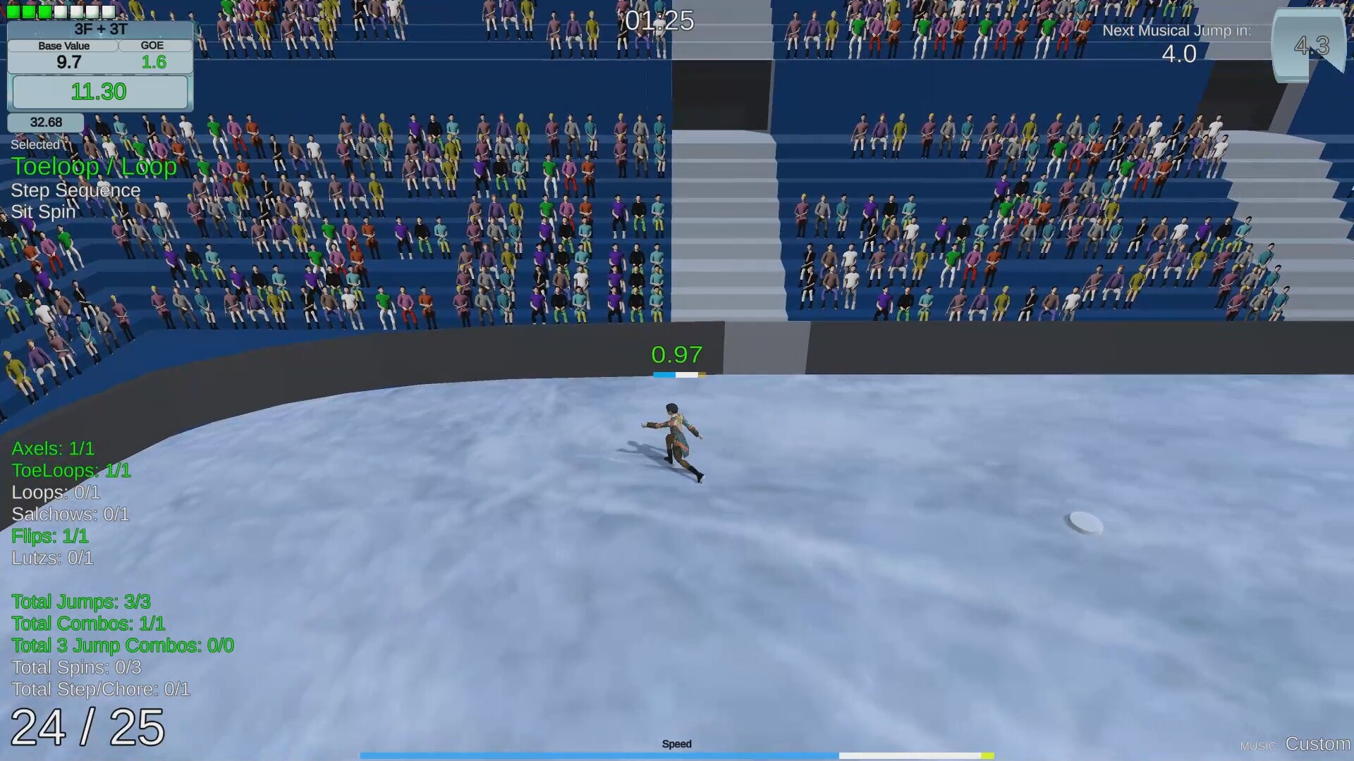 Unleash your creativity by choreographing custom figure skating routines! Choose from a wide array of moves, including elegant spirals, breathtaking spins, and intricate footwork sequences. Add flair to your programs with six iconic jumps: Axel, Toe Loop, Loop, Flip, Salchow, and Lutz. Pair your choreography with music that matches your vision—now, you can even upload your own music in MP3 or WAV format. Additionally, personalize your skater’s appearance by uploading custom textures in PNG, JPEG, or JPG formats.