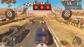 Players navigate through diverse environments, including dusty desert roads, ramshackle junkyards, and winding country lanes. Race opponents, complete time trials, participate in tournaments in single player - or challenge a friend for a cutthroat couch multiplayer session!