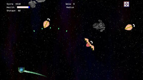 Shotgun - This gun shoots 5 bullets in a spread. While slower, it does a good job clearing out asteroids and other enemies close to you when you badly need some personal space.