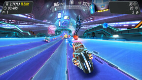 Садись на свою научно-фантастическую мотоциклу и пройди различные гонки, времяпробежные испытания и другие вызовы в неоновой освещенной метрополии.