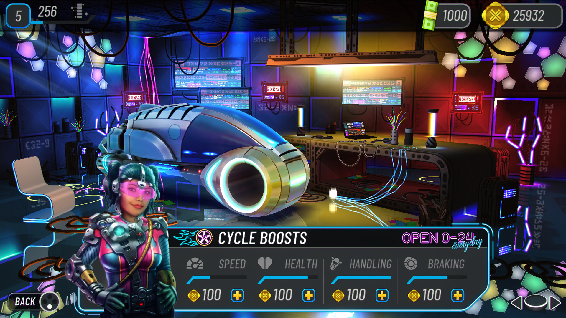 Исследуй свечение футуристических улиц, находи каждый буст, открывай каждое транспортное средство, побеждай каждого босса и собирай как можно больше монет для улучшения своего мотоцикла до экстремально высоких скоростей!
