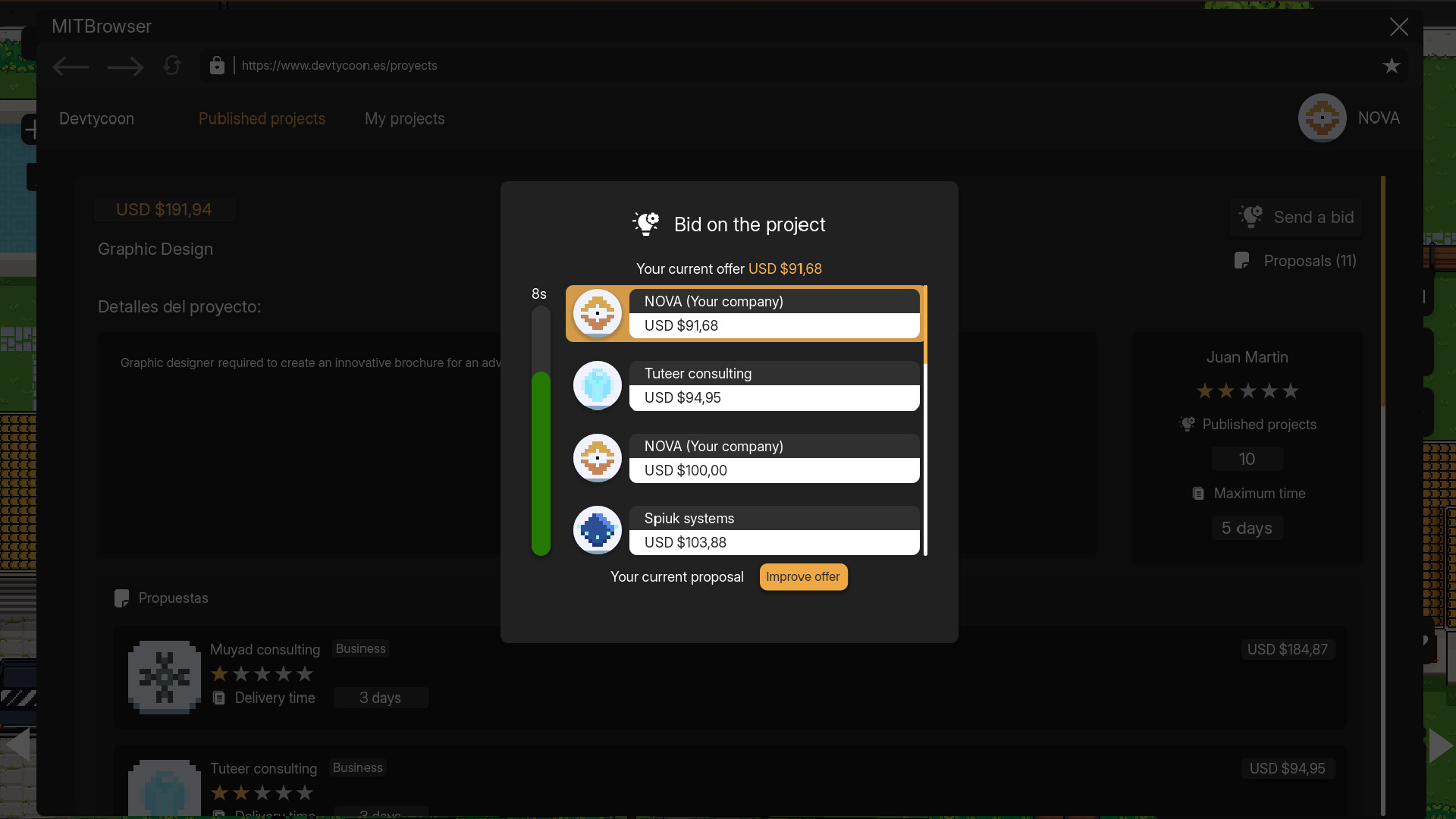 Submitting proposals: In this mode, you will have to submit proposals for client projects, competing with other companies in the market.