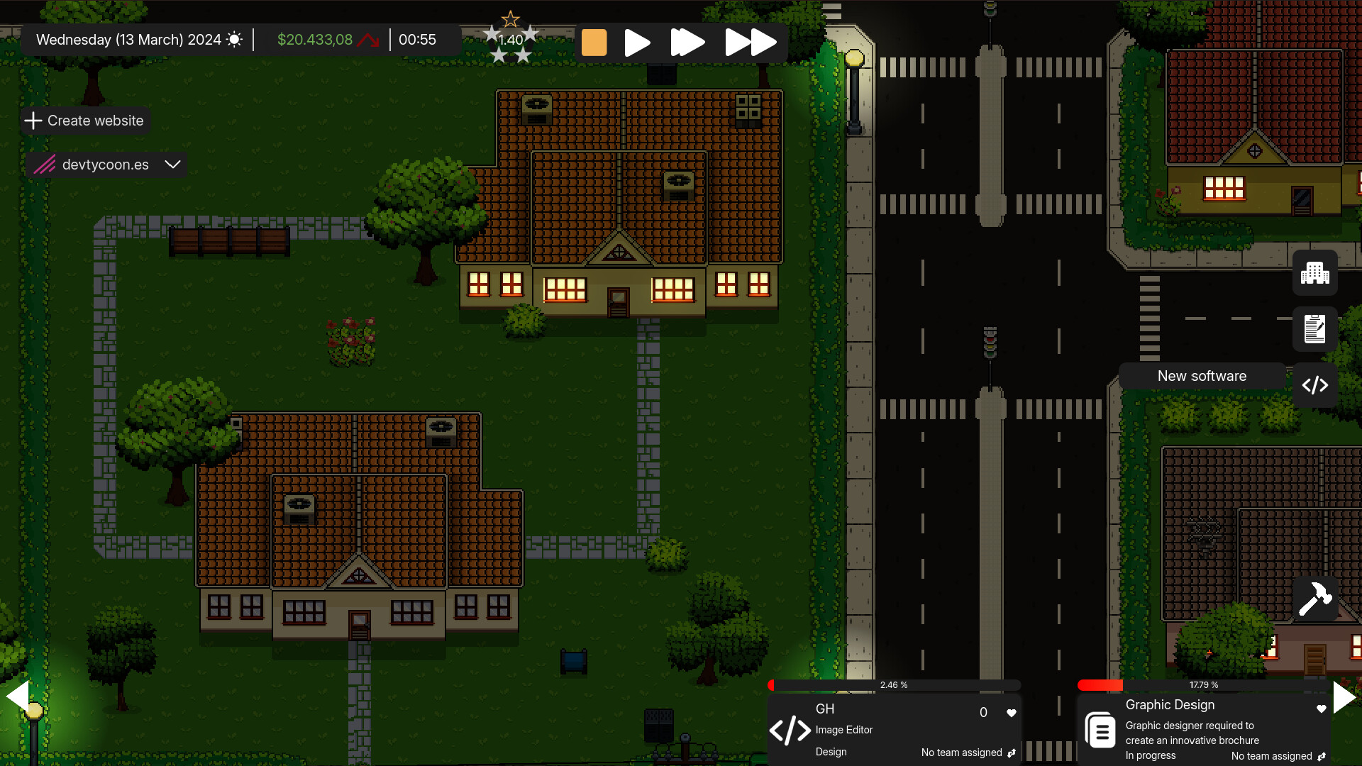 One of the pillars of DevTycoon is software creation. As the owner of your company, you will have the opportunity to design, develop, and customize programs to meet the needs of the market.