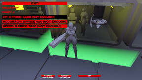 The gameplay is simple: you run around, shoot enemies, and gather materials to unlock costumes and earn money for upgrades.