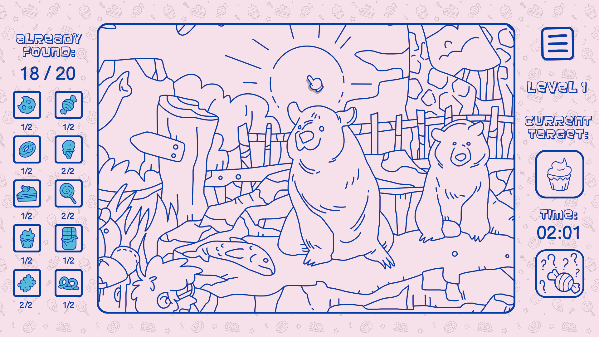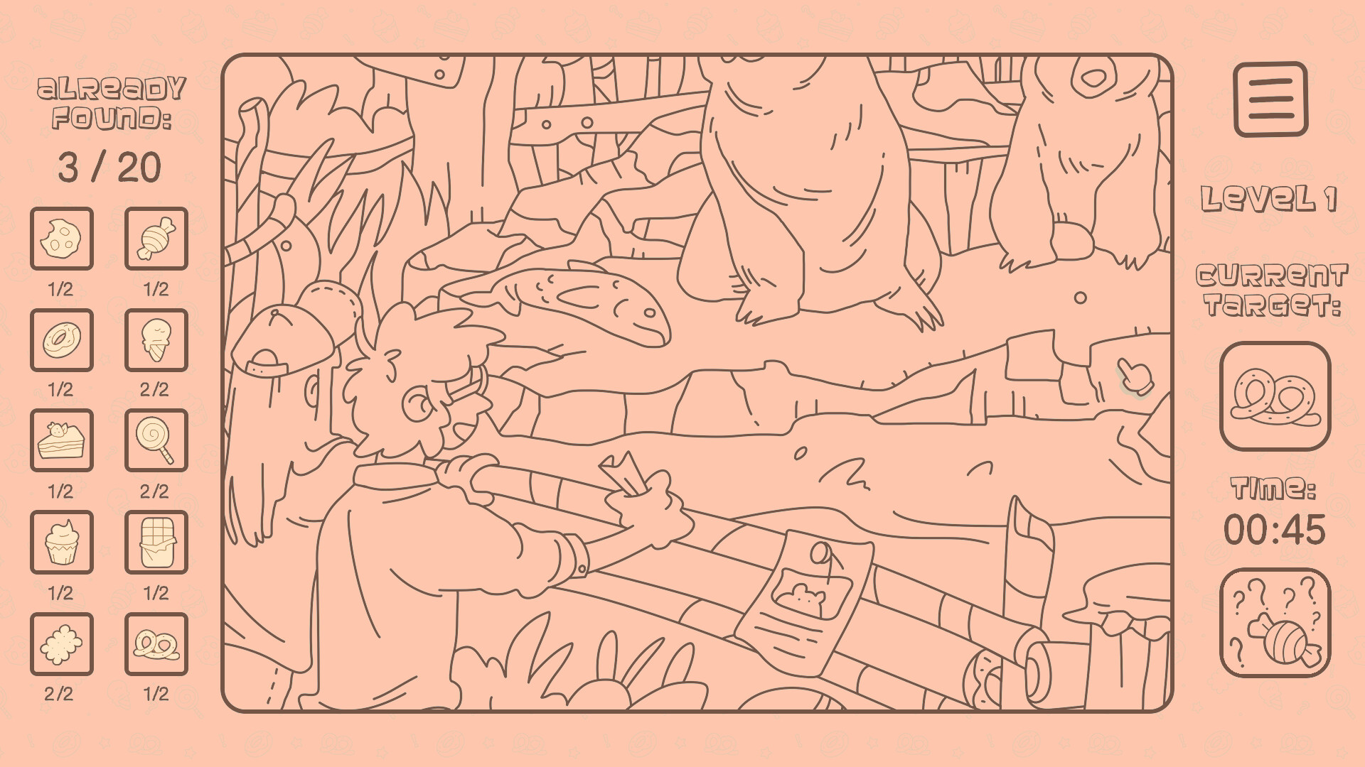 There's No Cake is a hidden object game with a selection of 9 locations and random sweet treats to find for each of them.