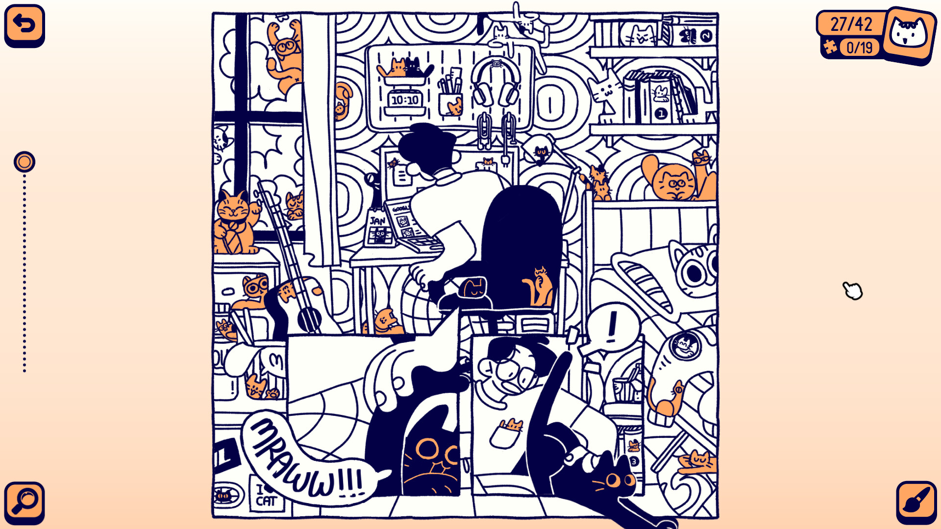 Привет, добро пожаловать обратно в наш экспериментальный проект с прячущимися кошками! Cats Around Us — это серия, которая сочетает в себе трогательные беззвучные комиксы и игру на поиск прячущихся кошек.