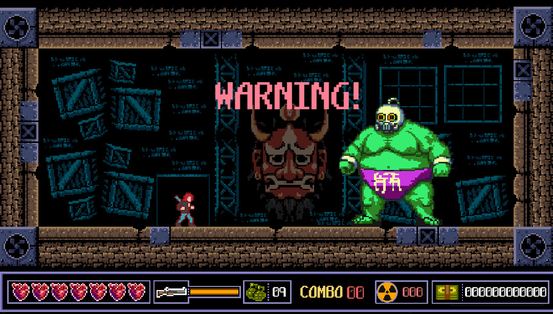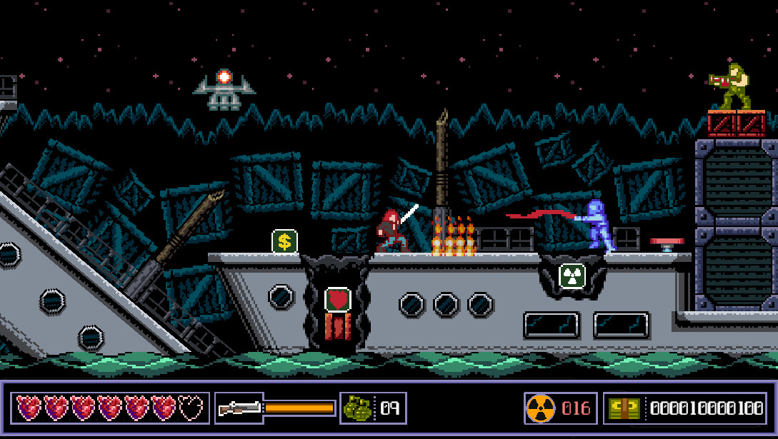 An atomic war has reduced the world to a heap of ruins. However, there are still those who refuse to give up and seek to bring justice even in this chaos. Use your blade, granades and shotgun to fight your way through this post-apocalyptic scrolling action-platformer in pure 80s arcade style.