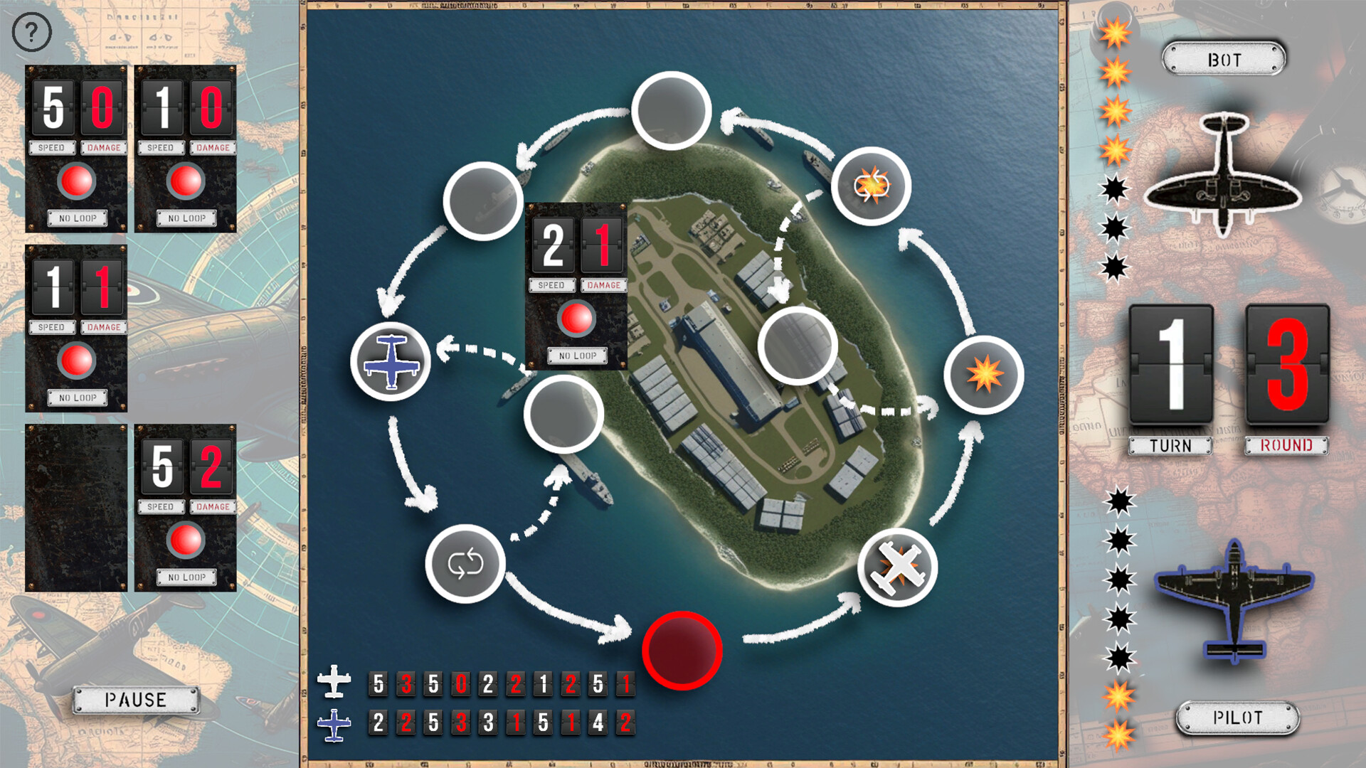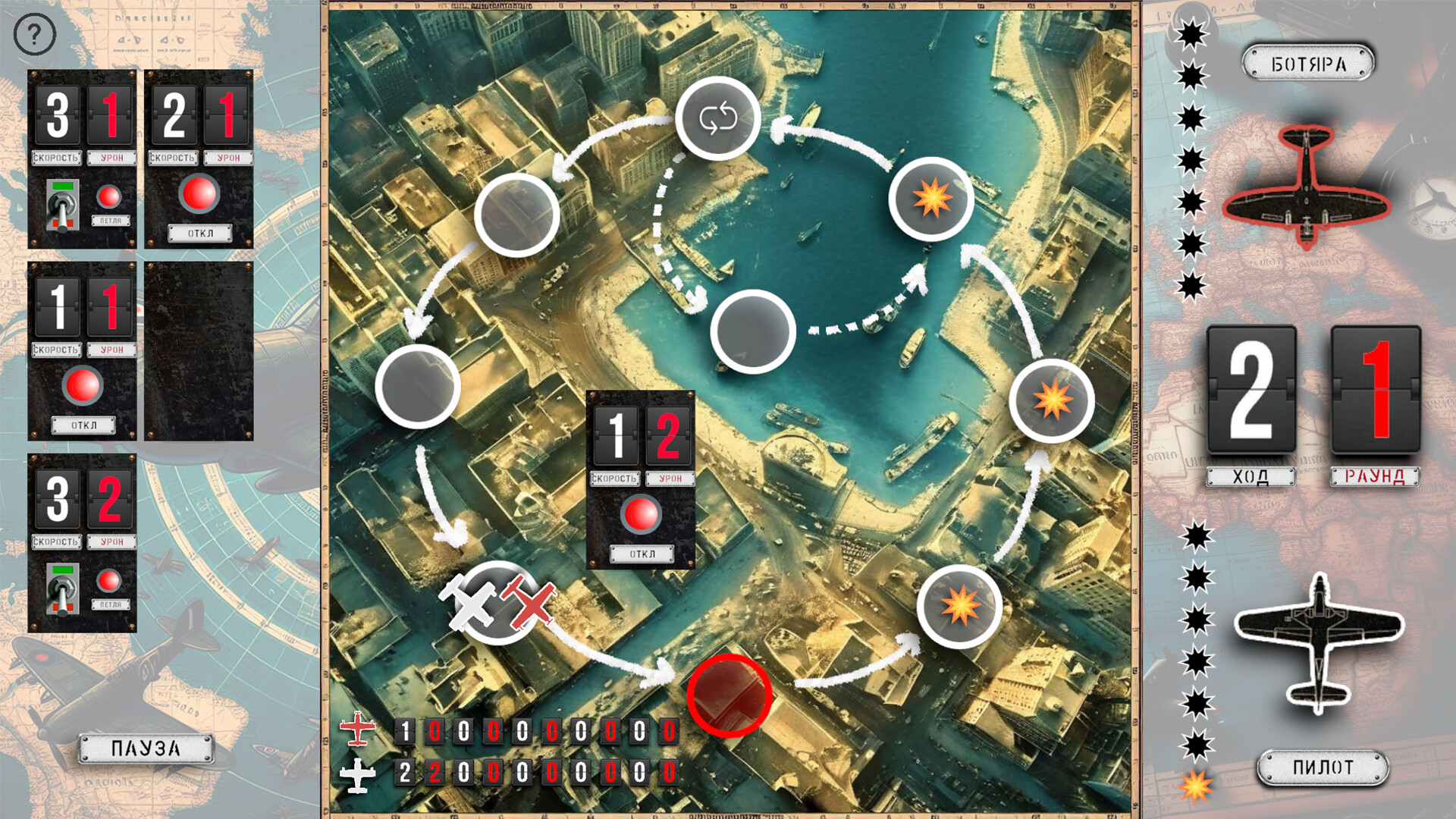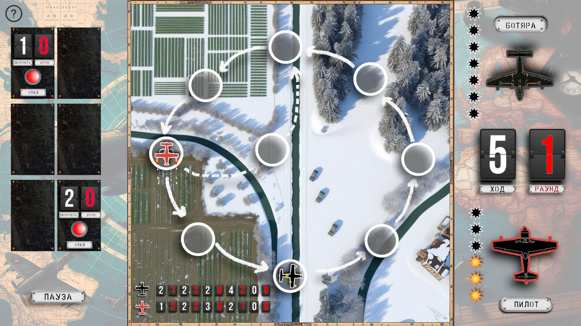 •Каждый игрок ходит одновременно с соперником, играя карточку хода своего самолета