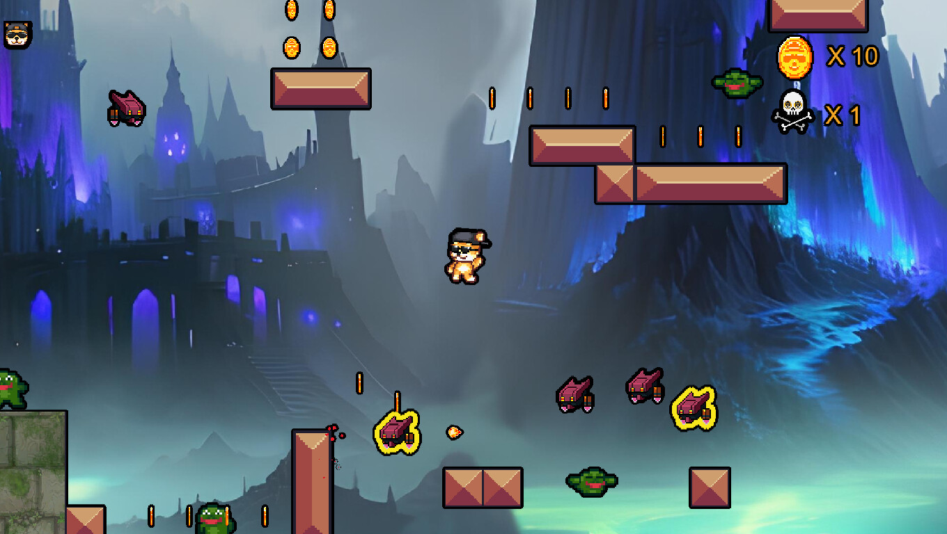 Welcome to "Doge Head Attack"! An exciting platformer inspired by Memecoins. Embark on an epic adventure through four unique levels, filled with challenges and mini-games that will test your skills. This meme-inspired game features plenty of jokes and humor to keep you entertained!