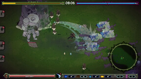 As you go through each level, a different type of enemy will spawn each minute. Enemies drop EXP, or potions with temporary effects. When you collect enough EXP, you can select one of three upgrades to give your character additional abilities or to strengthen their stats for this run only.