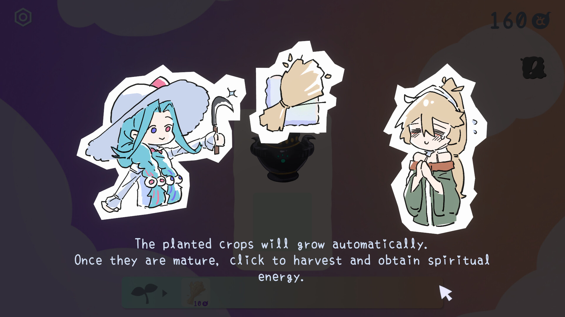 Plant seeds, wait for crops to grow, and click to gather spiritual power.