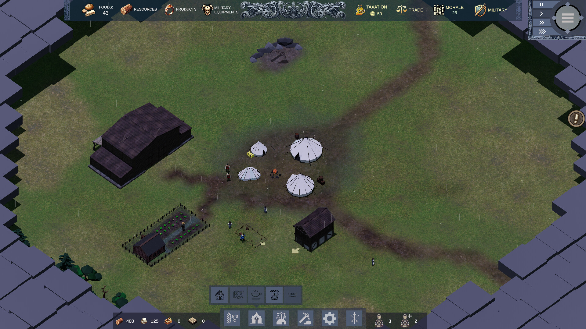 Расширяйте свое население, протягивая руку помощи незнакомцам, ищущим место для поселения. Вы можете временно защитить своих последователей, отдавая ресурсы или золото внешним угрозам, выдвигающим требования, или же вы можете обучить военные части, чтобы навсегда устранить эти угрозы. Каждое ваше решение имеет последствия, и ваша основная цель — привести своих последователей к процветанию.