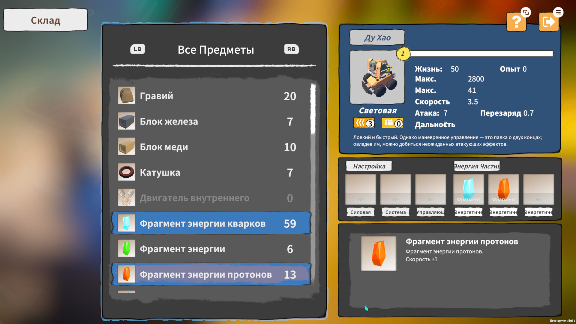 Создавайте или синтезируйте снаряжение, используя детали и фрагменты энергетических частиц.