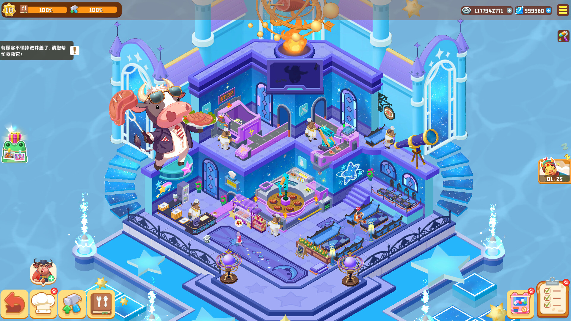 Recruiting a manager is the first step when opening a new shop. Train your manager by upgrading your dishes; as their level increases, you will gain more shop privileges!