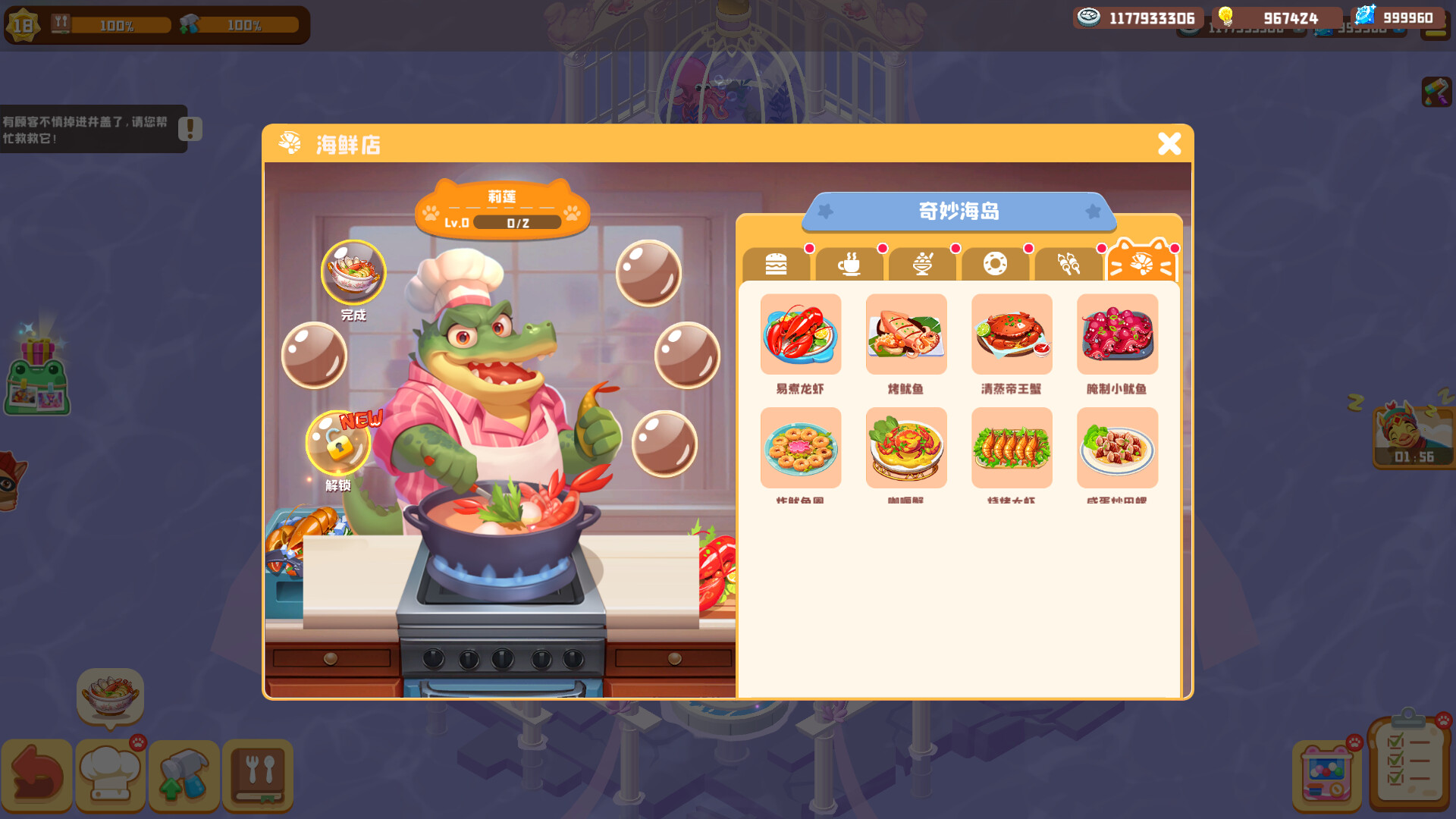Use the Capsule Machine to unlock more dishes. Each shop has 20 special dishes to choose from. The more dishes you unlock, the more your profits will skyrocket!